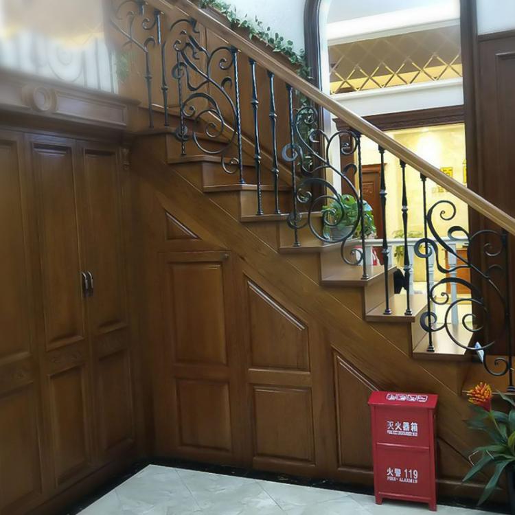 廠家供應(yīng)家用室內(nèi)實(shí)木制樓梯 紅橡整體鐵藝樓梯