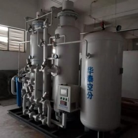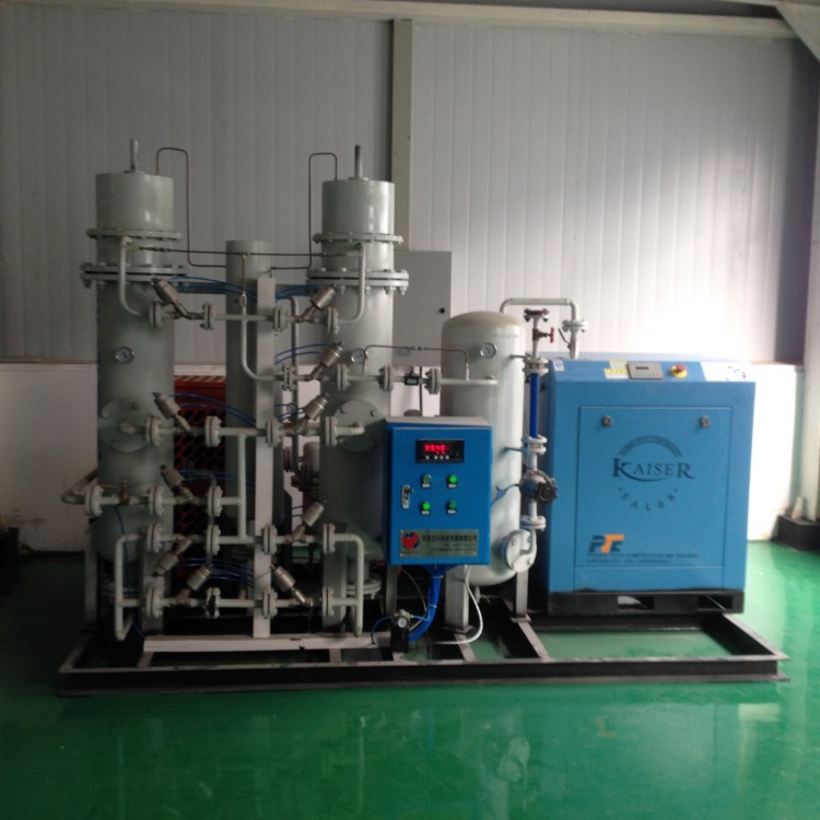 變壓吸附制氮設備是采用碳分子篩作為吸附劑,在一定的壓力下,利用空氣中的氧、氮在碳分子篩孔隙中擴散速率不同而達到分離空氣的目的。即碳分子篩對氧的擴散吸附遠大于氮,通過可編程序控制器來控制多個閥門的導通、關閉,達到兩只吸附塔的交替循環(huán)工作:加壓吸附,減壓脫附的過程,從而完成氧、氮的分離,得到用戶所需純度的氮氣。