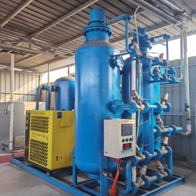 變壓吸附制氮設(shè)備是采用碳分子篩作為吸附劑,在一定的壓力下,利用空氣中的氧、氮在碳分子篩孔隙中擴散速率不同而達到分離空氣的目的。即碳分子篩對氧的擴散吸附遠大于氮,通過可編程序控制器來控制多個閥門的導通、關(guān)閉,達到兩只吸附塔的交替循環(huán)工作:加壓吸附,減壓脫附的過程,從而完成氧、氮的分離,得到用戶所需純度的氮氣。