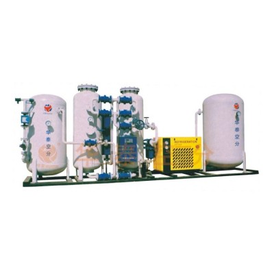 變壓吸附制氮設(shè)備是采用碳分子篩作為吸附劑,在一定的壓力下,利用空氣中的氧、氮在碳分子篩孔隙中擴(kuò)散速率不同而達(dá)到分離空氣的目的。即碳分子篩對氧的擴(kuò)散吸附遠(yuǎn)大于氮,通過可編程序控制器來控制多個閥門的導(dǎo)通、關(guān)閉,達(dá)到兩只吸附塔的交替循環(huán)工作:加壓吸附,減壓脫附的過程,從而完成氧、氮的分離,得到用戶所需純度的氮氣。