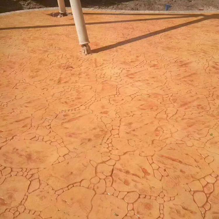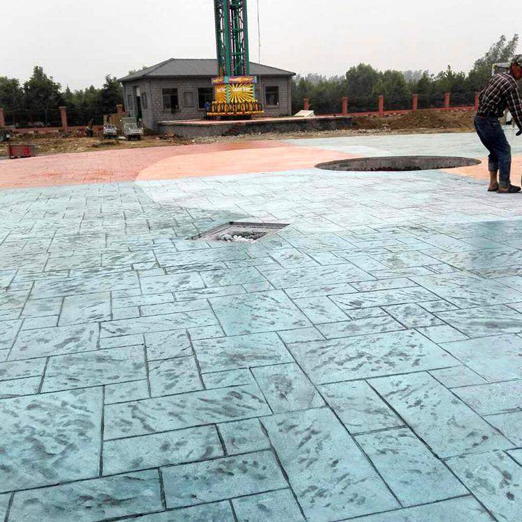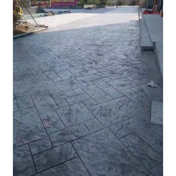 5、使用藝術(shù)地坪模具對(duì)地坪面層進(jìn)行紋理處理。藝術(shù)地坪模具應(yīng)配套使用,首先確定好紋理的分布方向,選好一塊模具放置的位置和角度,然后其它的模具依次緊貼一塊模具放置。彩色混凝土藝術(shù)地坪壓模采用壓模,壓模應(yīng)由技術(shù)較好的人員進(jìn)行作業(yè)以保證壓紋深度一致和模具放置的準(zhǔn)確性。