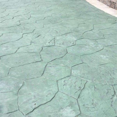 5、使用藝術(shù)地坪模具對(duì)地坪面層進(jìn)行紋理處理。藝術(shù)地坪模具應(yīng)配套使用,首先確定好紋理的分布方向,選好一塊模具放置的位置和角度,然后其它的模具依次緊貼一塊模具放置。彩色混凝土藝術(shù)地坪壓模采用壓模,壓模應(yīng)由技術(shù)較好的人員進(jìn)行作業(yè)以保證壓紋深度一致和模具放置的準(zhǔn)確性。