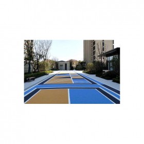 5、使用藝術地坪模具對地坪面層進行紋理處理。藝術地坪模具應配套使用,首先確定好紋理的分布方向,選好一塊模具放置的位置和角度,然后其它的模具依次緊貼一塊模具放置。彩色混凝土藝術地坪壓模采用壓模,壓模應由技術較好的人員進行作業(yè)以保證壓紋深度一致和模具放置的準確性。