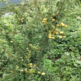 【果實特點】平均單果重15-25克,大40克,果實正圓形或近圓球形,果皮紫紅色,果肉黃色或偶帶片狀紅色。離核,核小。可食率高,果肉硬脆,香甜可口,縫合線正,縫溝淺,果點黃色,較密,大小均勻,耐儲運,營養(yǎng)豐富。
