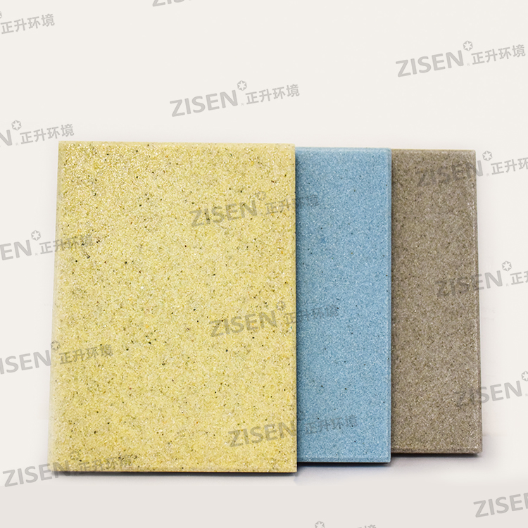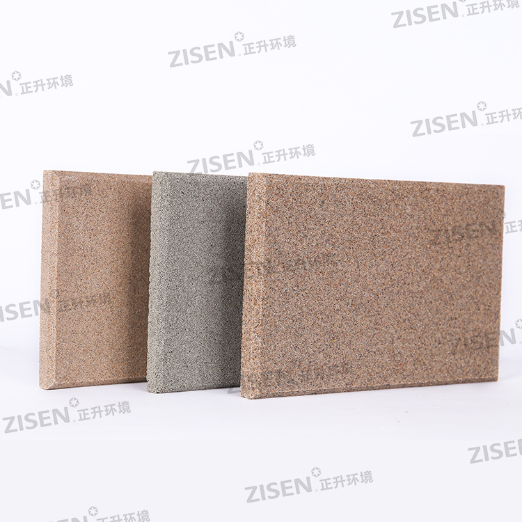 微粒環(huán)保吸聲板內(nèi)部形成了大量不規(guī)則且相互連通的微小空隙,再配以空腔,可將多孔吸聲結(jié)構(gòu)特性與共振吸聲結(jié)構(gòu)相結(jié)合,大大提高了吸聲板的吸聲頻帶寬度;且通過調(diào)整顆粒大小,板材厚度及板后空腔大小,實(shí)現(xiàn)其頻率特性可調(diào)的功能,滿足不同頻段的吸聲設(shè)計(jì)要求。