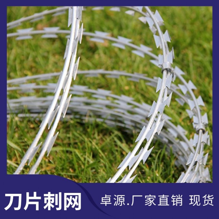 卓源不銹鋼刀片刺網(wǎng) 刀刺網(wǎng)支架 鍍鋅刀片刺繩 滾籠刺網(wǎng)批發(fā)
