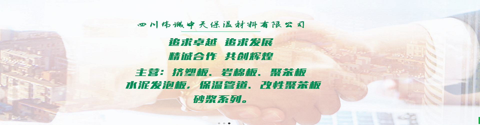 四川偉誠中天保溫材料有限公司主營保溫砂漿,xps擠塑板,巖棉板,聚苯板,保溫砂漿,網(wǎng)格布,A級聚合聚苯板,復(fù)合硅酸鹽水泥泡沫,保溫釘系列,公司從研發(fā)、設(shè)計、生產(chǎn)及施工服務(wù)于一體,公司坐落于美麗的四川彭州,公司依托先進(jìn)的生產(chǎn)技術(shù)和設(shè)備,不斷的引進(jìn)和開發(fā)生產(chǎn)新產(chǎn)品,公司聚集了一批研發(fā)及管理人員,憑著良好的產(chǎn)品質(zhì)量在業(yè)內(nèi)形成了良好的口碑,秉承精誠合作、開拓創(chuàng)新經(jīng)營理念,以精良的施工團(tuán)隊,規(guī)范的施工技術(shù),完善的質(zhì)保體系,為客戶提供從測定需求,設(shè)計安裝,適用產(chǎn)品,專業(yè)施工,售后跟蹤的一站式配套服務(wù),竭力達(dá)到產(chǎn)品與施工的融合,我們將繼續(xù)保持優(yōu)質(zhì)的產(chǎn)品的質(zhì)量和完善的售后服務(wù),我們注重與您合作的商機(jī),更加珍惜合作中建立的長期友誼和信任,與您攜手共進(jìn),誠信合作,互利共贏。我們擁有強(qiáng)大的平臺資源: 1、擁有保溫、裝飾、防水一級資質(zhì)。 2、已成為萬科、龍湖、華潤、新城、恒大、藍(lán)光等地產(chǎn)20強(qiáng)絕大部分戰(zhàn)略伙伴。 3、十五年專筑一面墻,在建筑裝飾工程的墻體墻板、防水保溫、修繕改造領(lǐng)域擁有深厚的技術(shù)沉淀和豐富的工程案例。 4、在簡陽擁有大型研發(fā)生產(chǎn)基地,提供研發(fā)、生產(chǎn)、銷售、工程一條龍服務(wù)。 5、近兩年已經(jīng)吸納多位合伙創(chuàng)業(yè)者... [詳細(xì)介紹] |