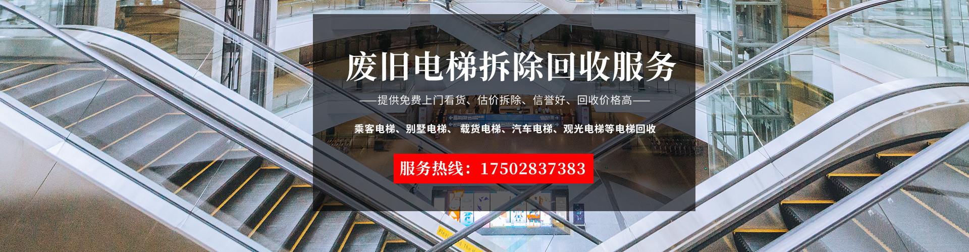 成都富立斯再生資源回收有限公司簡(jiǎn)稱富立斯電梯回收,是專業(yè)電梯拆除回收的公司,是國(guó)內(nèi)的電梯回收、廢舊電梯回收、電梯拆除回收再利用公司,長(zhǎng)期高價(jià)提供各類廢舊電梯、乘客電梯、載貨電梯、醫(yī)用電梯、汽車(chē)電梯、船用電梯、觀光電梯、雜物電梯、電動(dòng)扶梯、別墅電梯、住宅電梯、辦公樓電梯、商場(chǎng)超市電梯、特種電梯、建筑施工電梯、液壓電梯、自動(dòng)人行道、無(wú)機(jī)房電梯等國(guó)產(chǎn)及進(jìn)口電梯拆除回收服務(wù),我們提供免費(fèi)上門(mén)看貨、估價(jià)拆除,如果您或您的身邊有閑置的廢舊電梯設(shè)備需要回收處理那就請(qǐng)與我們聯(lián)系吧!我們將為您提供優(yōu)質(zhì)的廢舊電梯拆除回收服務(wù)。我們公司讓閑置的廢舊電梯設(shè)備資產(chǎn)再利用起來(lái),變廢為寶可以簽定長(zhǎng)期回收協(xié)議,公司成立至今,穩(wěn)定客戶數(shù)千家,客戶遍及政府、單位、企業(yè)、銀行,鐵路、醫(yī)院、學(xué)校、家庭、個(gè)人、深得各方的好評(píng)。本公司本著誠(chéng)信為本,公平求生存,信譽(yù)作保證,互惠互利的原則贏得了良好的商業(yè)信譽(yù)和眾多客戶的信賴,我們熱忱期盼著與您合作,免費(fèi)上門(mén)服務(wù),快速反應(yīng),讓閑置又占用空間的廢舊電梯設(shè)備利用起來(lái)。 [詳細(xì)介紹] |