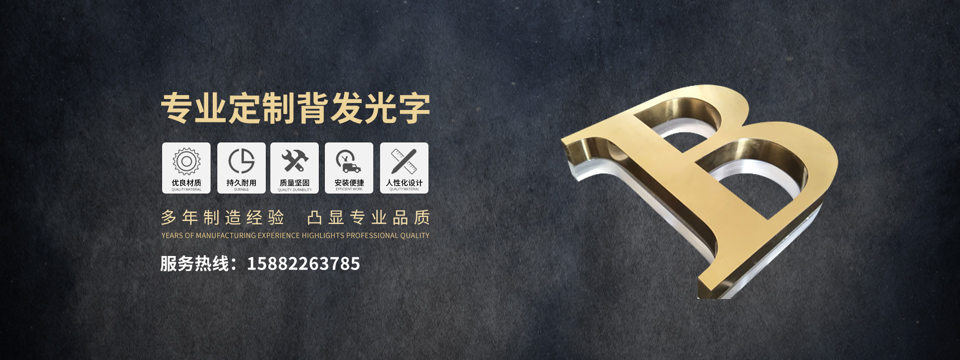 成都市實誠兢業(yè)廣告有限公司是一家集研發(fā)、設(shè)計、生產(chǎn)、銷售為一體的專業(yè)發(fā)光字生產(chǎn)廠家。經(jīng)過多年的不懈努力和執(zhí)著的追求,現(xiàn)發(fā)展成為為擁有完善的設(shè)計團隊以及專業(yè)的售后及時部門,熟練掌握發(fā)光標(biāo)識行業(yè)樹脂字,迷你字,平面字,精工背光字,無邊字等一系列發(fā)光字制作技術(shù),是大型生產(chǎn)廠家。在企業(yè)發(fā)展過程中,公司引進(jìn)并培養(yǎng)了一批專業(yè)的樹脂合成... [詳細(xì)介紹]