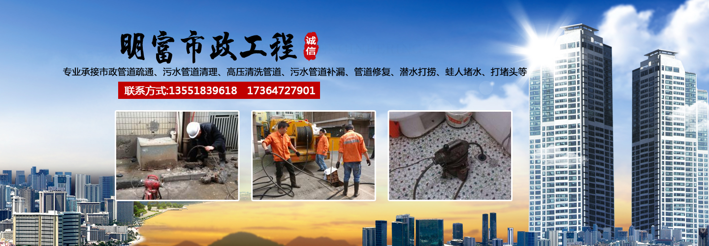 四川明富市政工程有限公司是一家經(jīng)成都市錦江區(qū)市場和質(zhì)量監(jiān)督管理局批準成立的管道清疏通、市政清淤的服務(wù)公司。公司常年無休,專業(yè)承接市政管道疏通、污水管道清理、高壓清洗管道、污水管道補漏、管道修復(fù)、化糞池抽運、污水池清理、化油池抽運、工業(yè)廢水清運、泥漿抽運、河道清淤、涵洞清淤、汽車抽糞、管道扯堵頭、管道堵水等相關(guān)業(yè)務(wù)。是一支具備專業(yè)技術(shù)、設(shè)備先進的公司,受到廣大客戶企業(yè)領(lǐng)導(dǎo)的一致好評。公司擁有先進的設(shè)備和過硬的技術(shù),工作人員技術(shù)精良、訓(xùn)練有素、作風(fēng)過硬。從人業(yè)人員專業(yè)、長期從事各種管道研究、管道維護的專業(yè)化工作。擁有各種大中型管道養(yǎng)護清洗清運專用車輛,各種小型清潔疏通設(shè)備。公司定期對公司技術(shù)人員專業(yè)培訓(xùn),對工人進行定期指導(dǎo),施工過程中嚴格管理,操作規(guī)范,做到人撤,車離,現(xiàn)場凈。努力把每一件事做的更好,是我們永遠追求的目標(biāo)。 公司服務(wù)網(wǎng)點遍及蓉城各個城區(qū),把方便和我們的微笑留給了我們的每一位客戶。公司的每一位員工服務(wù)規(guī)范,操作規(guī)范,施工整潔快捷。公司本著一切以顧客滿意為標(biāo)準,以信譽求發(fā)展,以質(zhì)量求生存的宗旨,用我們的服務(wù)為每一位新老顧客排憂解難,為社會... [詳細介紹]  |
