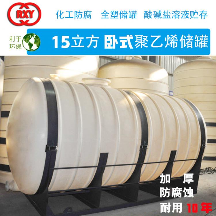 全塑臥式儲(chǔ)罐 15立方聚乙烯儲(chǔ)罐 化工防腐 酸堿鹽溶液貯存 PE儲(chǔ)罐