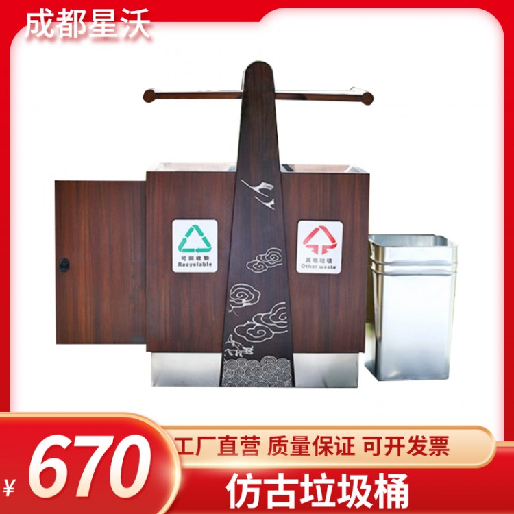 雙桶垃圾桶 木紋轉(zhuǎn)印垃圾箱景點(diǎn)市政街道垃圾果皮箱 可定制尺寸