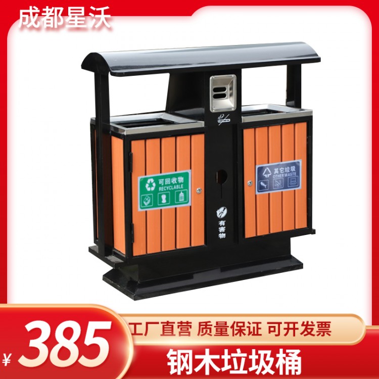 鋼木垃圾桶 戶外雙分類小區(qū)景區(qū)果皮箱 可定制尺寸 現(xiàn)貨量大