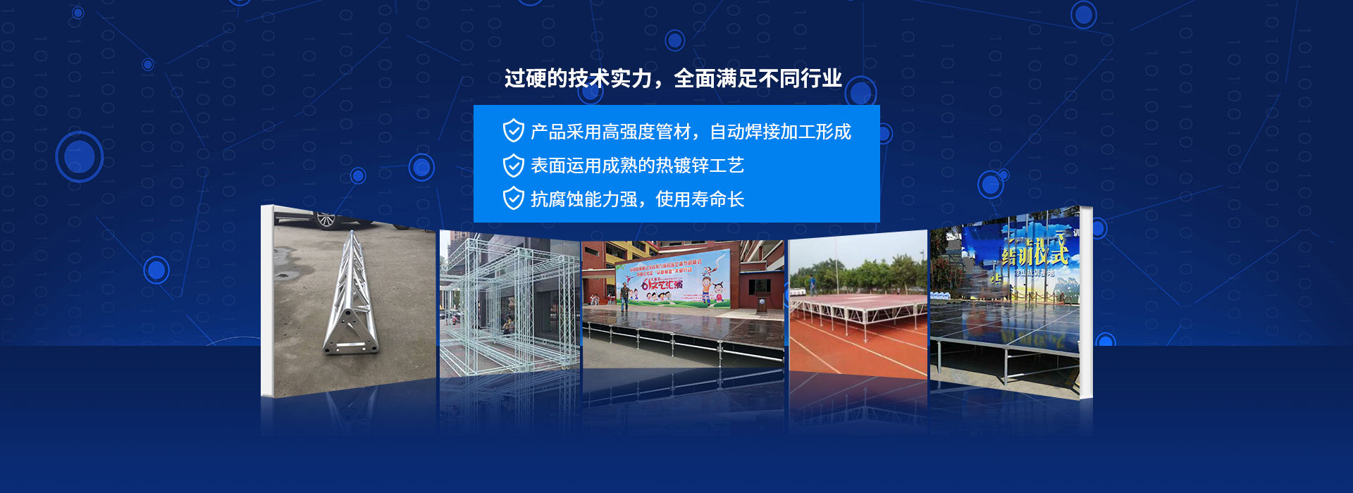 成都長(zhǎng)宏金屬制品有限公司位于成都雙流,創(chuàng)立于2014年,注冊(cè)資金300萬元,工廠占地面積5000平方米長(zhǎng)宏是一家集設(shè)計(jì)、開發(fā)、生產(chǎn)、銷售、租賃于一體的綜合性企業(yè),本公司主要生產(chǎn)舞臺(tái)機(jī)械,鋁合金燈光架,折疊、拼裝式活動(dòng)舞臺(tái),背景桁架,網(wǎng)架,校辦公寓床、課桌椅,辦公桌椅,吧臺(tái)吧椅,戶外體育健身等器材。