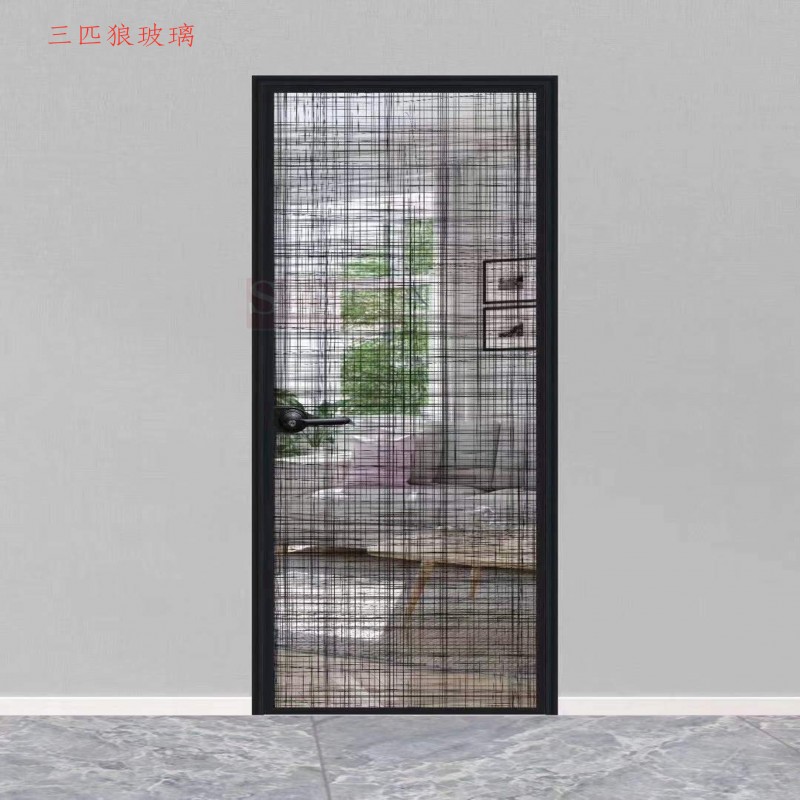 夾絲玻璃夾膠玻璃山水畫夾絲娟玻璃不銹鋼玻璃門
