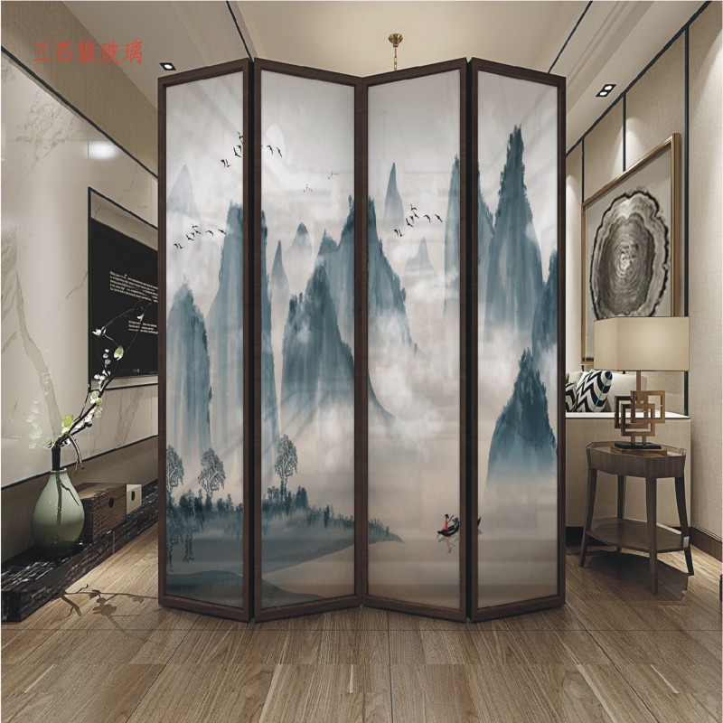 夾膠夾絲水墨畫藝術玻璃3d藝術玻璃玻璃隔斷墻