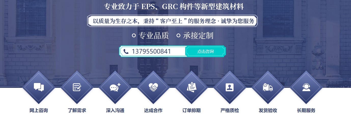 眉山市建業(yè)建材有限公司是專業(yè)設(shè)計、生產(chǎn)、銷售、安裝建筑裝飾GRC水泥裝飾構(gòu)件、EPS泡沫裝飾構(gòu)件的專業(yè)廠家。公司位于眉山市東坡區(qū)復(fù)盛鄉(xiāng),占地面積5千余平米,公司有專業(yè)的安裝隊伍,*的工藝流程和專業(yè)的技術(shù)研發(fā)團隊。公司以客戶需求為導(dǎo)向,不斷創(chuàng)新、*品質(zhì)、改進工藝,已成為國內(nèi)受客戶歡迎的GRC品牌,在國內(nèi)同行業(yè)中處于aa地位。公司研制的GRC水泥裝飾構(gòu)件強度高,不自裂,不爆銹,不滲水,尤其公司*的GRC專用補縫膠徹底消除了GRC構(gòu)件安裝上墻后接縫開裂的通病,從而**了客戶使用GRC產(chǎn)品的長久性及合法權(quán)益,從而達到雙方共贏的局面!GRC--采用抗堿性玻璃纖維,混合高標(biāo)號特種水泥砂漿以及多種輕質(zhì)材料和預(yù)埋金屬件,經(jīng)特殊工藝精鑄而成的一種復(fù)合型材料,兼具了特種水泥砂漿的高抗壓能力及玻璃纖維的高抗擴張,抗彎能力。自1970年由英國建筑研究機構(gòu)發(fā)展成功,由于它具有輕薄、抗撞、吸音、防火、防潮、外形多樣、施工快速等多種建材上之優(yōu)點,十多年來被*各國大量引進實用,廣泛作為建筑外墻裝飾材料。 [詳細介紹]  |
