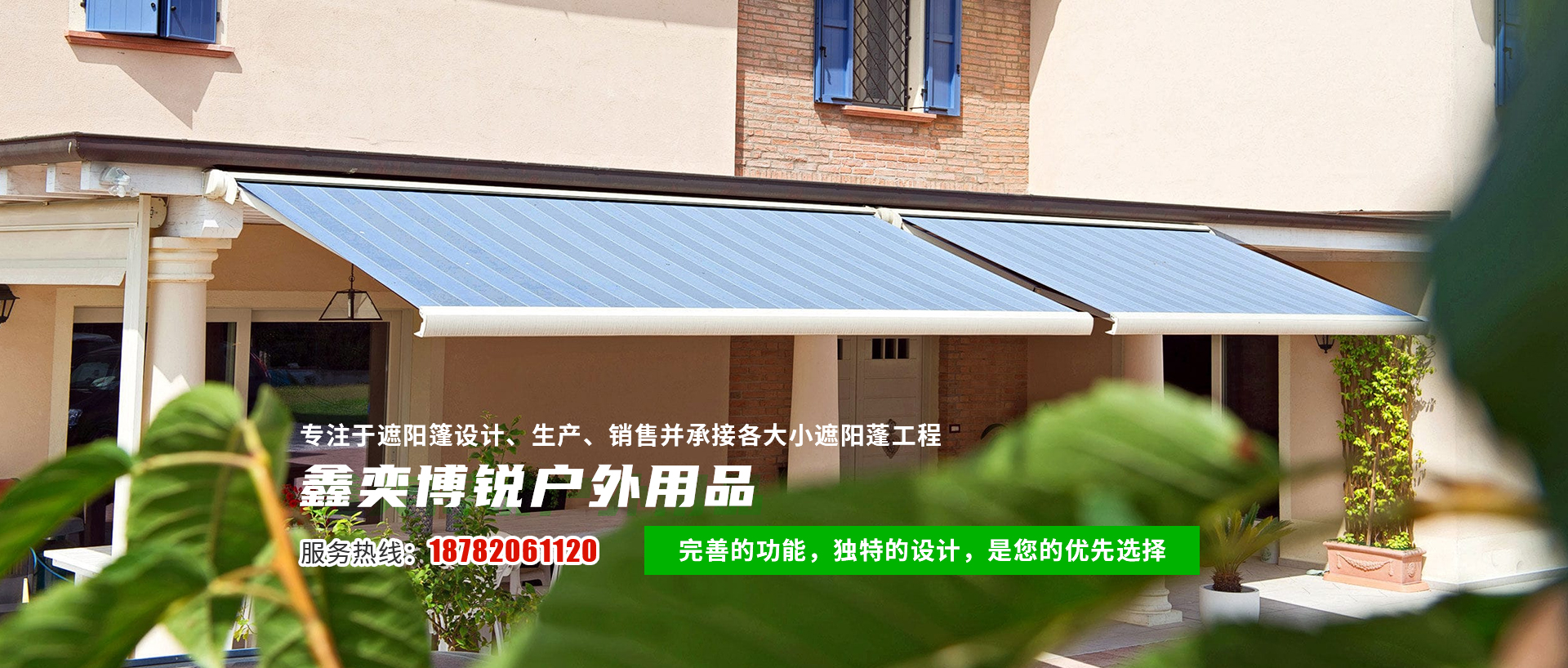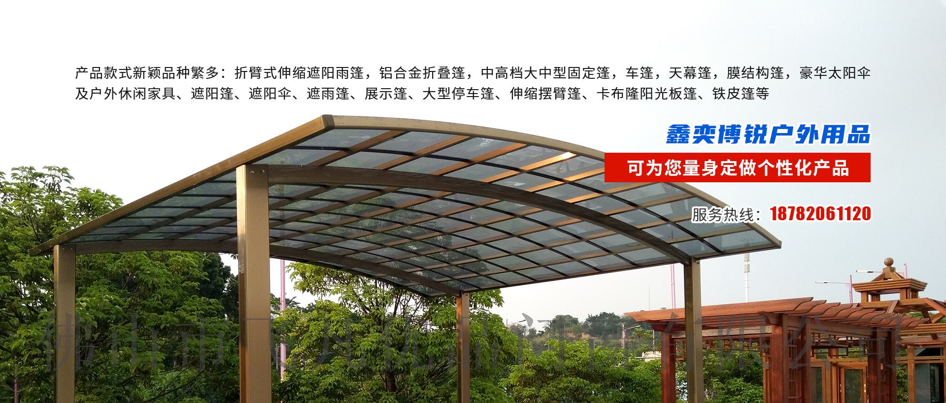 四川鑫奕博銳戶外用品有限公司是專業(yè)于遮陽篷設計、生產、銷售并承接各大小遮陽蓬工程的企業(yè),自公司成立至今,以革新新的技術、完善的功能,獨特的設計,完善而精益求精的生產品開發(fā)經驗,在同行業(yè)中信受推薦。 在很短的時間內,無論是在高雅的店面還是在溫馨的別墅,高品質的鑫奕博銳遮陽蓬為與眾不同的您量身定做個性化產品。 在經營過程中以優(yōu)良的職業(yè)道德、 的商業(yè)信譽、高質量的產品、完善的售后服務贏得了廣大用戶的信賴和支持。本公司遮陽篷系列產品款式新穎品種繁多:折臂式伸縮遮陽雨篷,鋁合金折疊篷,中高檔大中型固定篷,車篷,天幕篷,膜結構篷,豪華太陽傘及戶外休閑家具、遮陽篷、遮陽傘、遮雨篷、展示篷、大型停車篷、伸縮擺臂篷、卡布隆陽光板篷、鐵皮篷等。我們的服務宗旨是顧客至上、誠信為本!我們的經營理念是為顧客提供優(yōu)質滿意的服務!如有問題咨詢,隨時撥打24小時服務熱線(黃經理:18782061120) [詳細介紹]  |
