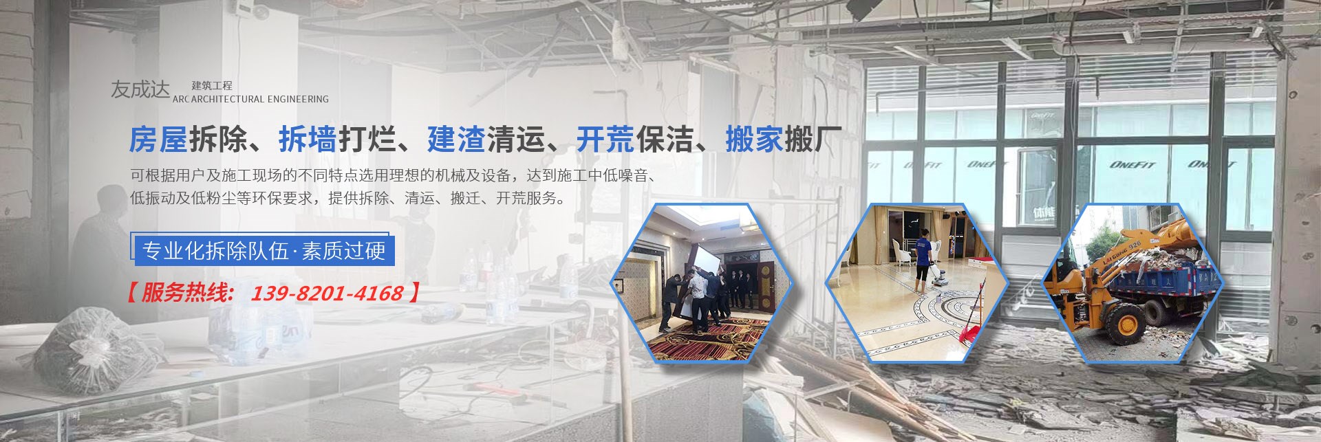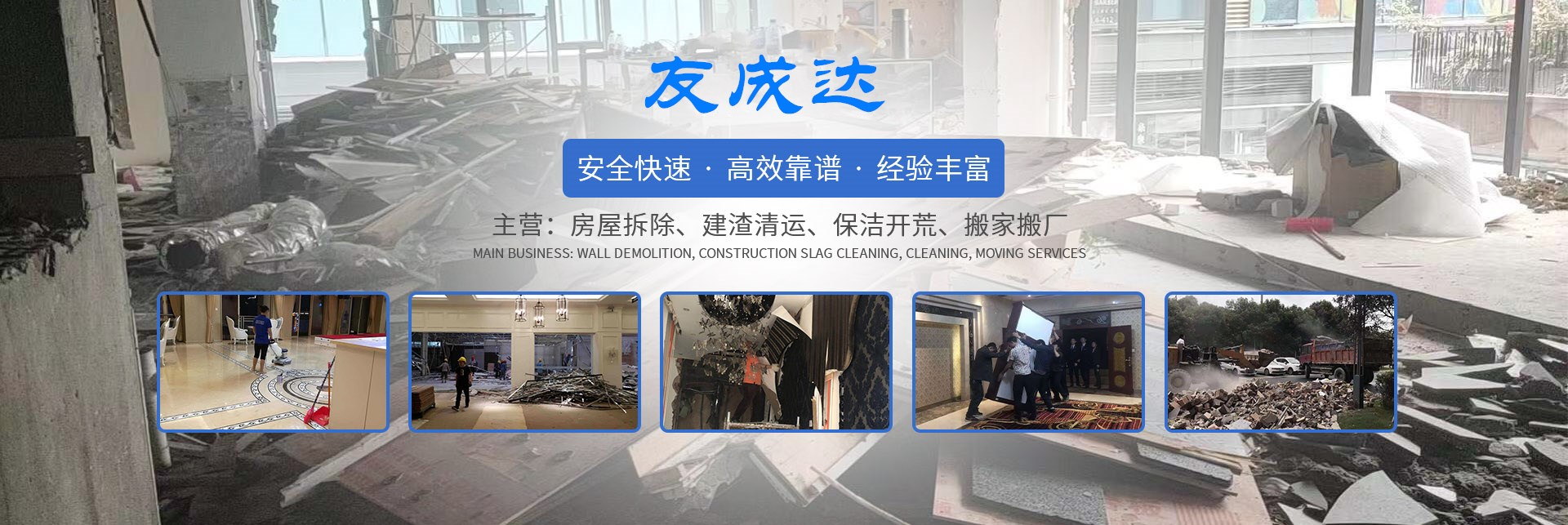 四川友成達(dá)建筑工程有限公司位于美麗的天府之國-成都。公司是一家專業(yè)從事房屋拆除、墻體拆除、拆墻打爛、建渣清運(yùn)、開荒保潔、搬家運(yùn)輸服務(wù)。公司拆除設(shè)備先進(jìn)、實(shí)力雄厚,擁有各類大型設(shè)備數(shù)余臺(tái),大型運(yùn)輸車數(shù)輛??筛鶕?jù)用戶及施工現(xiàn)場的不同特點(diǎn)選用理想的機(jī)械及設(shè)備,達(dá)到施工中低噪音、低振動(dòng)及低粉塵等環(huán)保要求。自公司成立以來,獨(dú)立承擔(dān)荷花池、人行道建設(shè)、樓盤售樓部拆除等工程。為適應(yīng)不斷增加的業(yè)務(wù)量及城市建設(shè)需求,公司在積極引進(jìn)設(shè)備的同時(shí),吸收并培養(yǎng)了一批技術(shù)精干、技術(shù)力量。憑借科學(xué)嚴(yán)謹(jǐn)?shù)墓芾恚蛟斐隽艘恢刭|(zhì)過硬、作風(fēng)頑強(qiáng)的專業(yè)化拆除隊(duì)伍。由于精益求精,注重安全、高效、快速、科學(xué)的管理及施工,使公司享譽(yù)蓉城,名列同行前茅。公司自始自終把安全放在首位,安全工作做到層層管理、層層監(jiān)督、層層落實(shí),實(shí)行相互監(jiān)督制度,杜絕違章。近幾年來,公司以技術(shù)的專業(yè)化和服務(wù)的規(guī)范化,在四川拆除市場創(chuàng)下驕人的業(yè)績,每項(xiàng)工程公司領(lǐng)導(dǎo)親臨現(xiàn)場查勘并制定確實(shí)可行的施工方案、安全管理制度和管理措施,克服了工期短、技術(shù)要求高等眾多困難。通過精心設(shè)計(jì)、和諧創(chuàng)新,并以合理的報(bào)價(jià)、設(shè)備、信守合同、安全快捷、優(yōu)... [詳細(xì)介紹]  |