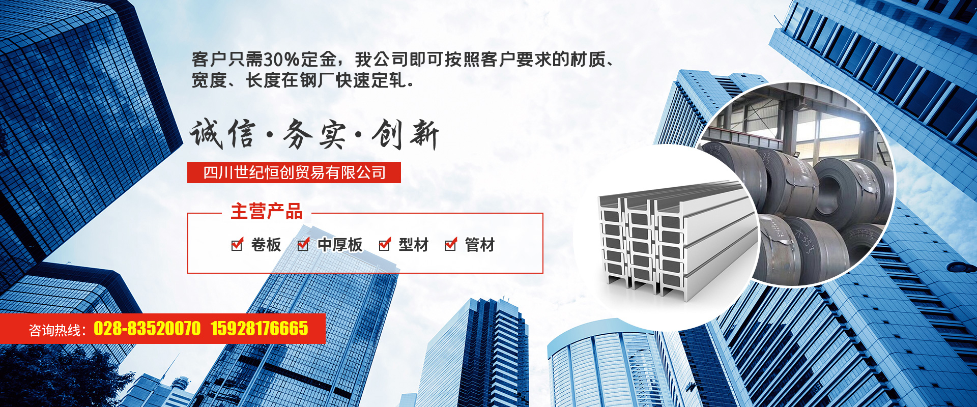 四川世紀恒創(chuàng)貿(mào)易有限公司成立于2014年,是一家集銷售、加工、配送于一體的綜合性鋼貿(mào)企業(yè)。公司現(xiàn)坐落于西南鋼鐵交易集散中心—成都市量力鋼材城,位于三環(huán)外貨運大道與成彭高架的交匯處,地理位置優(yōu)越,交通便利?,F(xiàn)有從業(yè)十余年的行業(yè)精英十余人,辦公、廠房面積百余平米。公司自成立之日起,在所有員工的共同努力下,本著“以質(zhì)量求生存,以信譽求發(fā)展”,竭誠為每一位客戶服務(wù)。已為西南地區(qū)四百余家企業(yè)客戶提供高質(zhì)量的產(chǎn)品及服務(wù)。從中樹立了“重合同、守信用”的良好口碑,先后成為中鐵、中冶、中交等公司的長期材料供應(yīng)商。產(chǎn)品遠銷四川、西藏、貴州、云南等地。 我公司主營攀鋼、重鋼、安鋼、包鋼、漢冶、酒鋼、八鋼等大型鋼廠生產(chǎn)的熱軋卷板、冷軋卷板、鍍鋅卷板、中厚板、高強板、橋梁板、高建鋼、Z向鋼板、耐候板及各類型材、管材、建材等產(chǎn)品。特殊規(guī)格及材質(zhì)可鋼廠快速定軋。 實力優(yōu)勢:公司實力雄厚,持續(xù)影響公司前進發(fā)展。公司產(chǎn)品種類繁多,能持續(xù)為各企業(yè)提供質(zhì)量良好的產(chǎn)品。世紀恒創(chuàng)市場營銷能力強大,并且重視網(wǎng)絡(luò)發(fā)展,重視物聯(lián)網(wǎng)于生活工作中的影響,持續(xù)于此方面的發(fā)展。公司員工都是多年從事行業(yè)工作... [詳細介紹] |