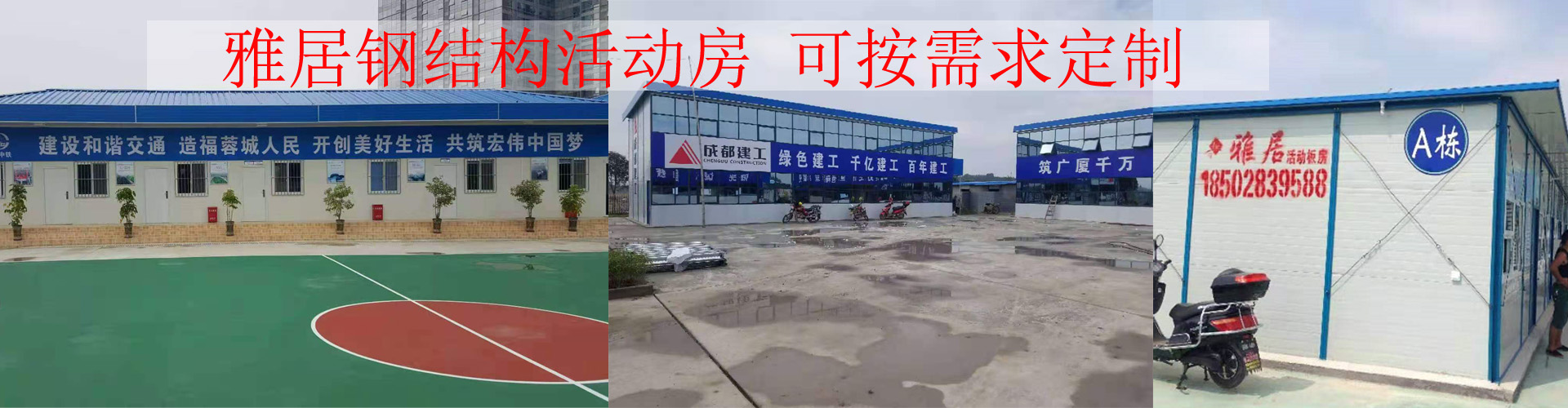 成都雅居鋼結(jié)構(gòu)工程有限公司,成立于2012年,長(zhǎng)期從事活動(dòng)板房、鋼結(jié)構(gòu)的加工,設(shè)計(jì)、安裝和施工等業(yè)務(wù),是一家集活動(dòng)房屋設(shè)計(jì)、生產(chǎn)、安裝、售后服務(wù)于一體的綜合企業(yè)。公司年生產(chǎn)量達(dá)30萬平方米,以強(qiáng)大的資金實(shí)力為依托,高起點(diǎn)地介入臨建房屋制造行業(yè),公司立足成都,放眼全國,立志打造具有影響力的”雅居”品牌。我們公司從小做起,累積經(jīng)驗(yàn),到現(xiàn)在已經(jīng)整整做了10年,參與多次公益活動(dòng)等。公司采用獨(dú)特的工藝技術(shù),生產(chǎn)美觀大方的定型產(chǎn)品K式、T型高、中、低檔活動(dòng)房屋。該房屋充分采用輕鋼結(jié)構(gòu)做框架,以夾芯板為墻體材料,以標(biāo)準(zhǔn)模數(shù)系列進(jìn)行組合,構(gòu)件采用螺絲栓連接,用人性化的空間組合方式構(gòu)成。完全實(shí)現(xiàn)快速組裝和拆卸便利,讓臨建進(jìn)入系列化開發(fā)的新紀(jì)元。銷售網(wǎng)絡(luò)覆蓋四川、重慶、云南、貴州、西安、陜西等地。曾多次參與大型水電、鐵路、高速路、橋梁等重大項(xiàng)目的配套板房建設(shè),深得業(yè)界好評(píng)。 公司擁有一幫專業(yè)的售后服務(wù)人員,以服務(wù)精神和工作態(tài)度,竭力為客戶提供高效快捷的優(yōu)質(zhì)服務(wù)。公司的定型產(chǎn)品——活動(dòng)房屋、箱式房、圍檔,是以輕鋼結(jié)構(gòu)為骨架、夾芯板(PVC)為墻體材料、以標(biāo)準(zhǔn)模數(shù)系... [詳細(xì)介紹] 最新供應(yīng)