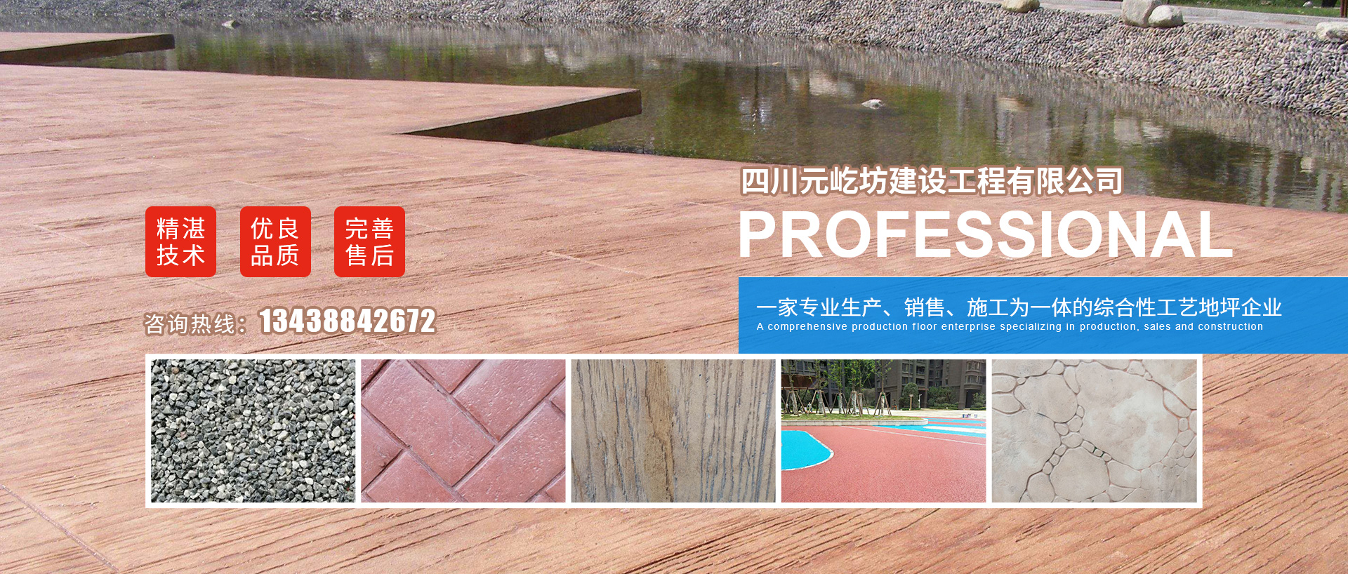 四川元屹坊建設(shè)工程有限公司成立于2019年,公司地點坐落于成都市武侯區(qū)、是一家專業(yè)生產(chǎn) 銷售 施工為一體的綜合性工藝地坪企業(yè)。公司成立以來,承接了全國各地近千家地坪工程。本公司憑借歐美精湛的專業(yè)技術(shù),強大的科研實力,優(yōu)良的施工品質(zhì)和完善的售后服務(wù),贏得了廣大客戶的信賴和贊譽。樹立了良好的企業(yè)形象。 公司本著以誠信為本,信譽質(zhì)量優(yōu)+的原則,在工業(yè)地坪領(lǐng)域?qū)⒏呖萍嫉漠a(chǎn)品、技術(shù)、服務(wù)竭力呈現(xiàn)給每一位客戶, 公司愿與各界企業(yè)同仁及有識之道攜手合作,共創(chuàng)大業(yè)! 主營:藝術(shù)壓模地坪、彩色透水混凝土、景觀工程設(shè)施。 公司產(chǎn)品具有環(huán)保丶節(jié)能丶低成本丶零維護等特點,廣泛用于人行道丶廣場丶園林道路丶停車場等場所,具有極高的安全性。 我們是一家設(shè)計、銷售、施工、服務(wù)于一體,專業(yè)從事工業(yè)地坪、商用地坪及藝術(shù)地坪等各類地面產(chǎn)品服務(wù)的綜合性企業(yè)。公司是專業(yè)生產(chǎn)、銷售各種工業(yè)地坪材料以及建筑裝飾設(shè)計和施工的專業(yè)單位,公司擁有一批富有實際經(jīng)驗的專業(yè)地坪和建筑裝潢施工隊伍、服務(wù)多地區(qū)客戶。 產(chǎn)品面向全國市場,為客戶定制各種施工方案,免費提供技術(shù)指導,亦可提供專業(yè)施工人員包工包料承接工程;以環(huán)保、平價的產(chǎn)品贏得客戶信賴,... [詳細介紹]  |