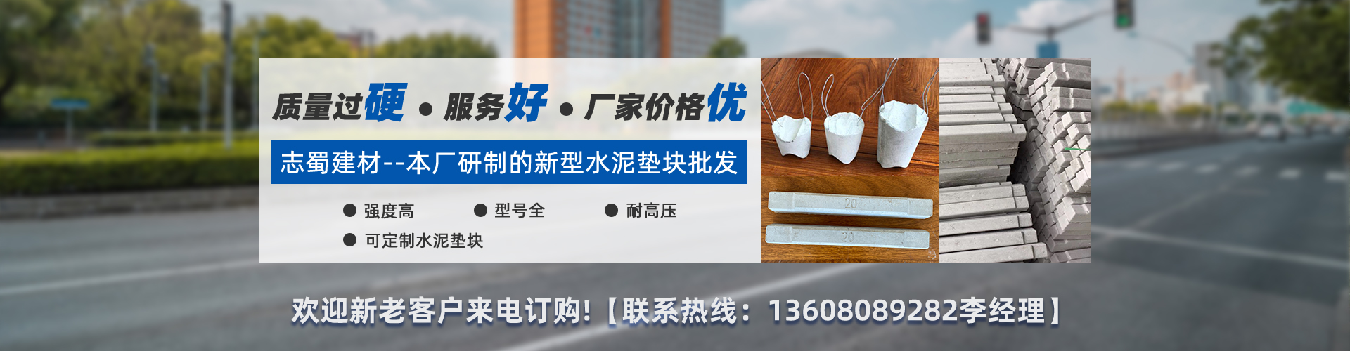 成都市志蜀建材有限公司是四川地區(qū)生產(chǎn)高性能混凝土墊塊的廠家,公司位于美麗的成都市新都區(qū)斑竹園鎮(zhèn)。公司擁有廠房40畝,員工有26人。 我司從事高性能混凝土墊塊的研究、開發(fā)、制造已有多年的歷史,型號齊全,質(zhì)優(yōu)價實,服務(wù)周到。主要生產(chǎn):混凝土墊塊、高鐵墊塊、水泥墊塊、剪力墻內(nèi)撐、馬凳、橋梁墊塊、鋼筋保護(hù)層墊塊、止?jié){棒、熱熔墊片等,廣泛應(yīng)用于高速鐵路、地鐵、隧道、高速公路、橋梁、機(jī)場、碼頭、民用建筑等多項工程建設(shè)。 我司根據(jù)國內(nèi)外市場需求研制開發(fā)生產(chǎn)的高強(qiáng)度混凝土墊塊,迅速銷往全國各地,現(xiàn)年銷售各類墊塊數(shù)千萬件,國內(nèi)成綿樂高鐵、成渝高鐵、成貴高鐵、蘭渝鐵路、成都地鐵、成德南高速、成安渝高速、成都第二、第三繞城高速、遂廣高速、遂西高速等鐵路和工程公司先后使用了本廠研制生產(chǎn)的各種混凝土墊塊。 我司技術(shù)力量雄厚,產(chǎn)品質(zhì)量過硬,凡研制生產(chǎn)的產(chǎn)品經(jīng)鐵路部產(chǎn)品質(zhì)監(jiān)檢驗中心橋梁與基礎(chǔ)檢驗站檢驗,抗壓強(qiáng)度≥60Mpa,可用于全國高速鐵路、高速公路、橋梁、機(jī)場、碼頭、寫字樓、住宅。 經(jīng)過不斷... [詳細(xì)介紹] |