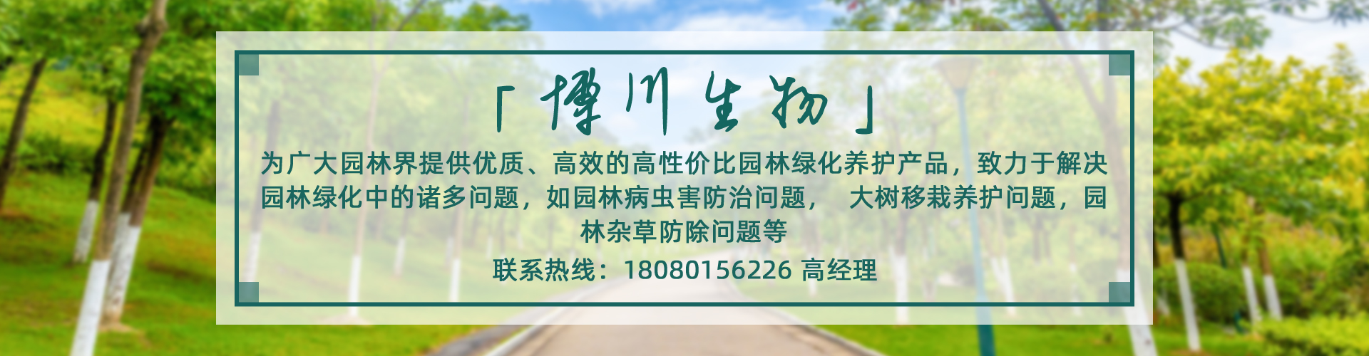 四川卓異博川生物科技有限公司創(chuàng)立于2009年,是一家專業(yè)從事園林綠化養(yǎng)護(hù)產(chǎn)品的研發(fā)和銷售的企業(yè),公司位于有“天府之國”之稱的四川省成都市,公司以“誠信、務(wù)實、創(chuàng)新”為核心價值,以“園林醫(yī)生”的標(biāo)準(zhǔn)為己任,通過公司全體員工的努力,為廣大園林界的朋友提供優(yōu)質(zhì)、高效的高性價比園林綠化養(yǎng)護(hù)產(chǎn)品,致力于為廣大朋友解決園林綠化中的諸多問題,如園林病蟲害防治問題,大樹移栽養(yǎng)護(hù)問題,園林雜草防除問題等等。公司的園林養(yǎng)護(hù)產(chǎn)品主要包括草坪專用除草劑;大樹移栽生根劑、大樹吊針液等大樹養(yǎng)護(hù)產(chǎn)品;殺蟲劑、殺菌劑、肥料等園林養(yǎng)護(hù)產(chǎn)品。公司自成立以來,銷售網(wǎng)路已經(jīng)遍布全國各大城市,和許多朋友建立了長期穩(wěn)定的合作關(guān)系,公司以優(yōu)質(zhì)規(guī)范穩(wěn)定的產(chǎn)品質(zhì)量和專業(yè)的技術(shù)服務(wù)贏得了廣大用戶的認(rèn)可。公司員工90%以上具有本科以上學(xué)歷,健全的銷售網(wǎng)絡(luò)和得力的營銷隊伍保證了產(chǎn)品的推廣應(yīng)用。公司的理念是為廣大朋友提供高性價比的園林綠化養(yǎng)護(hù)產(chǎn)品,和大家互利共嬴起進(jìn)步。 企業(yè)精神 艱苦奮斗: 是企業(yè)發(fā)展之基,弘揚(yáng)艱苦創(chuàng)業(yè),挑戰(zhàn)自我,戰(zhàn)勝險惡,形成企業(yè)創(chuàng)造力 誠信務(wù)實: 是企業(yè)發(fā)展之本,注重實效考核,堅守誠信立業(yè),規(guī)范制... [詳細(xì)介紹] |