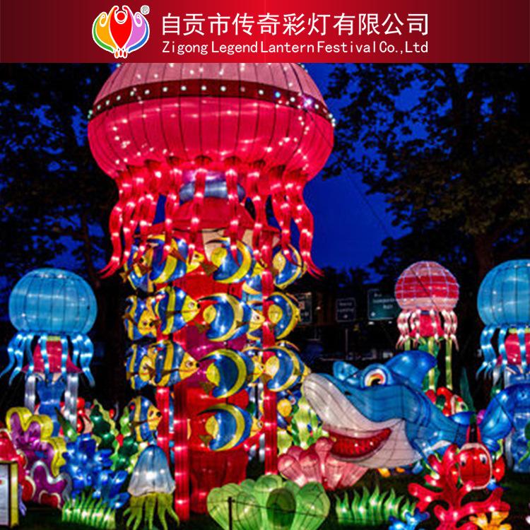 大型鯨魚海洋花燈傳統(tǒng)宮燈燈籠定制自貢燈會(huì)公司老虎花燈制作手工藝孔雀彩燈自貢彩燈廠家