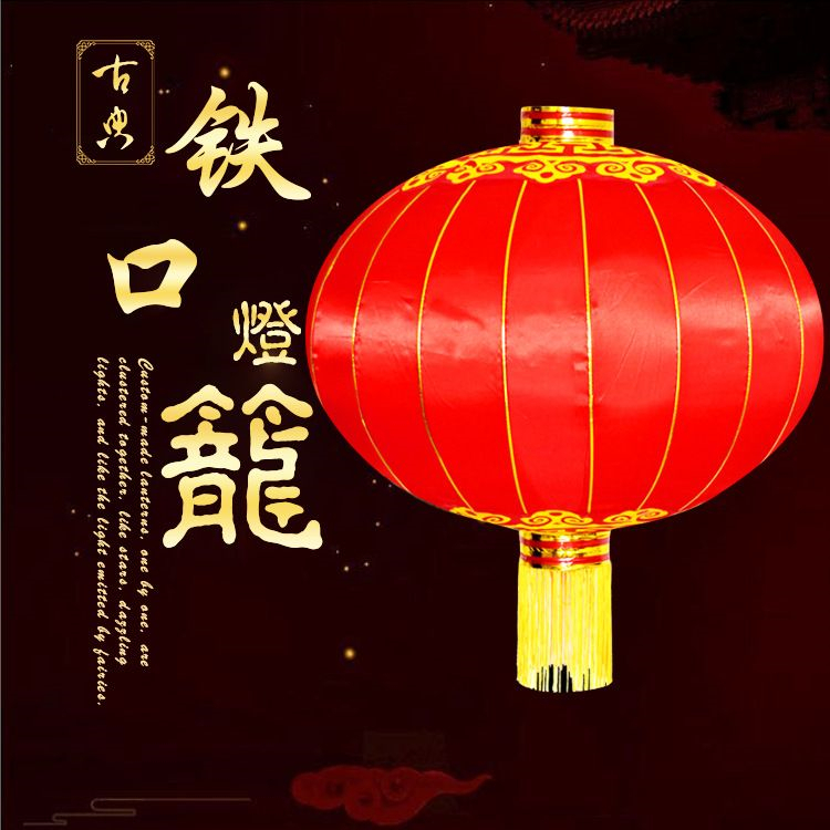 謙福 鐵口綢緞燈籠 印字大紅植絨新年喜慶節(jié)日裝飾紅燈 籠
