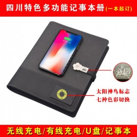 無線充電 電源工作記事本 帶U盤充電功能商務(wù)工作筆記本