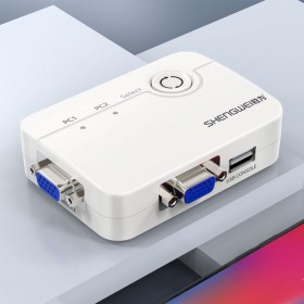 KS-302A 勝為kvm切換器一拖二vga2口雙電腦顯示器二合一筆記本打印機共用兩進一出高清音視頻網(wǎng)絡共享轉換鍵盤鼠標usb