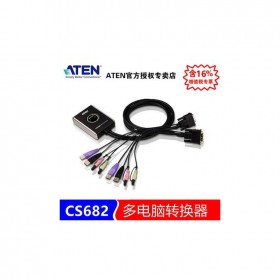 ATEN 宏正CS682 2端口USB單通道DVI帶線式KVM支持2.1音效1.2米