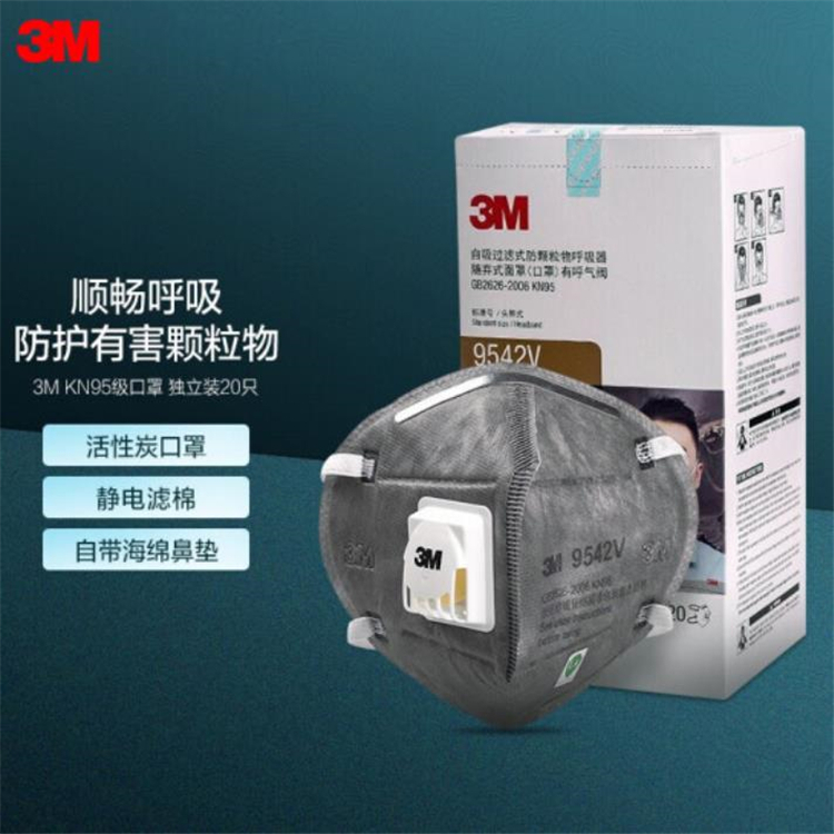 3M 9541v KN95級(jí)別 活性炭口罩 耳帶式 1盒20個(gè)裝