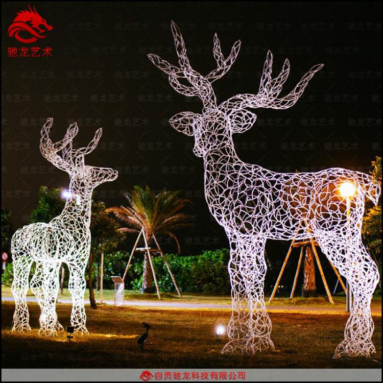 鏤空抽象金屬鹿雕塑鐵藝不銹鋼網(wǎng)格編織美陳景觀雕塑光雕彩燈擺件