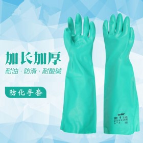 ansell/安思爾58-335 綠色丁腈手套 38cm防化酸堿勞保防護手套
