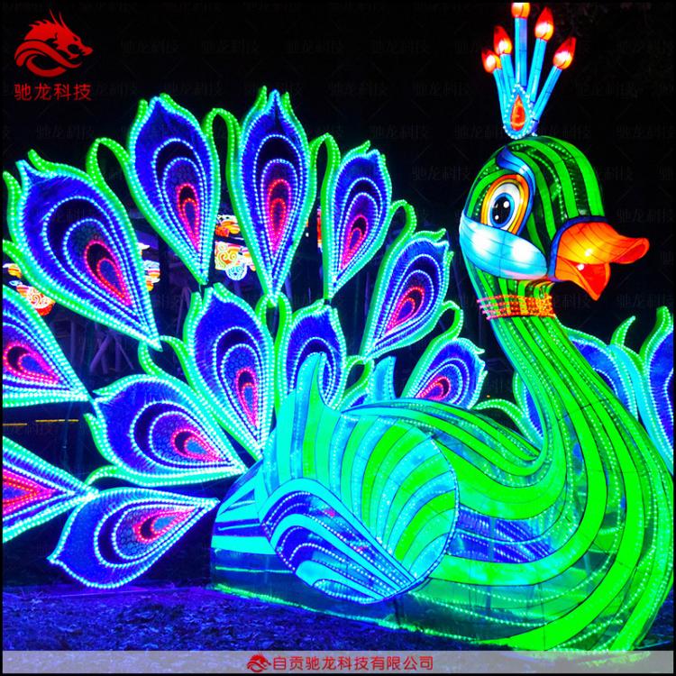 孔雀造型花燈彩燈夜游燈光節(jié)LED燈光雕定制制作燈展設(shè)計(jì)施工廠家