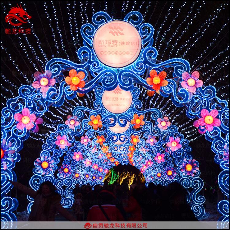 通道門頭造型光雕花燈亮化燈光節(jié)LED擺件夜游美陳氛圍藝術(shù)景觀燈裝置制作公司
