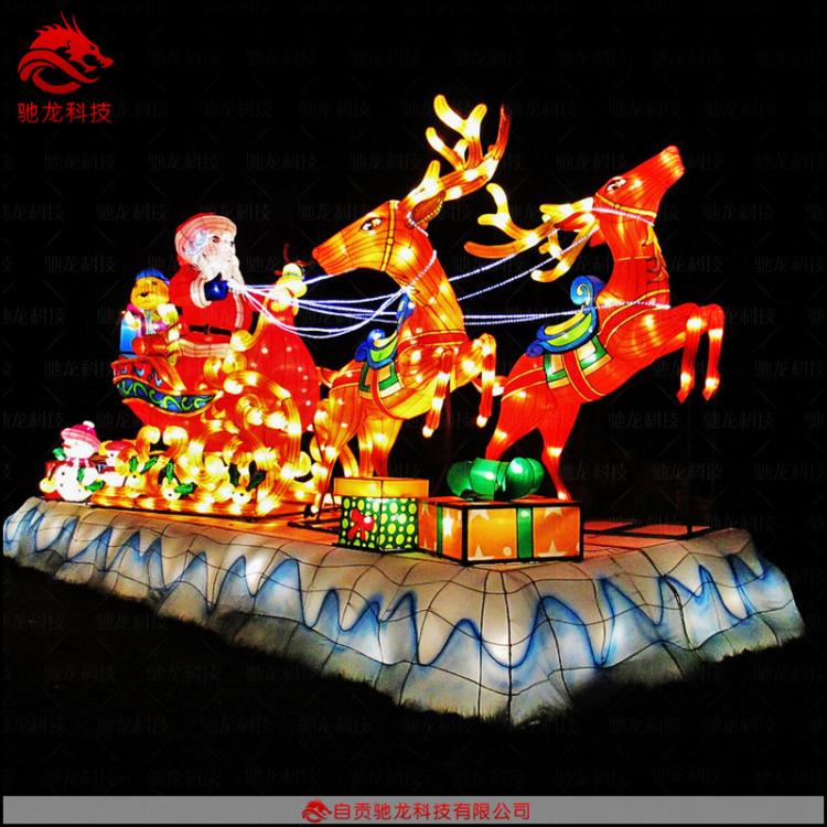 LED圣誕老人燈麋 鹿雪橇花燈造型花燈亮化美陳光雕彩燈展制作公司