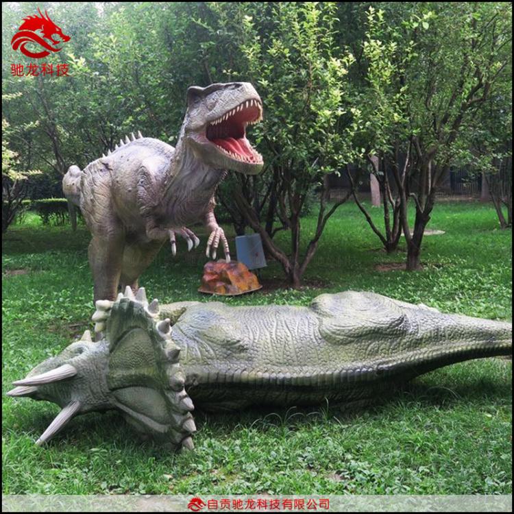 霸王龍攻擊三角龍仿真活體恐龍模型裝置氣動主題景觀機模定制仿真恐龍制作廠家