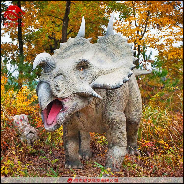三角龍雕塑大型仿生三角龍機(jī)械仿真電動(dòng)恐龍模型定做橡膠恐龍模型廠家