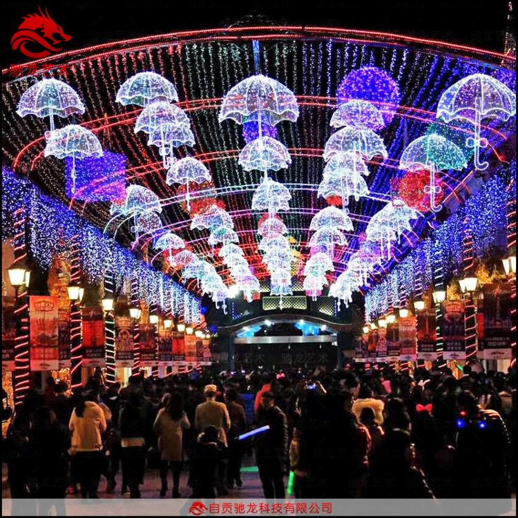 雨傘吊頂燈籠彩燈定制走廊通道懸掛花燈裝置燈光節(jié)樓盤商場(chǎng)美陳防水造型燈廠家