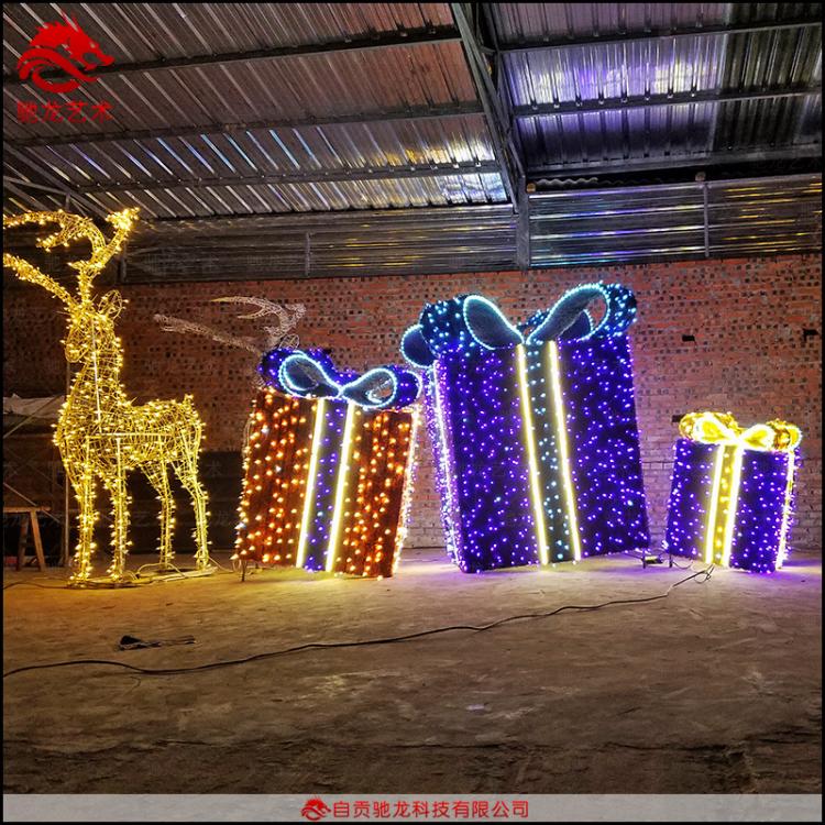圣誕節(jié)禮品盒裝飾彩燈樓盤商場(chǎng)人氣暖場(chǎng)夜景美陳圣誕鹿彩燈制作公司