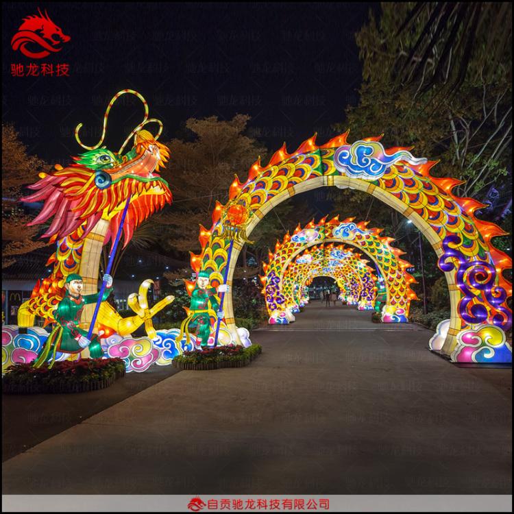 龍形拱門(mén)通道花燈大型彩燈定制室外鐵藝布燈籠定做燈會(huì)制作廠家