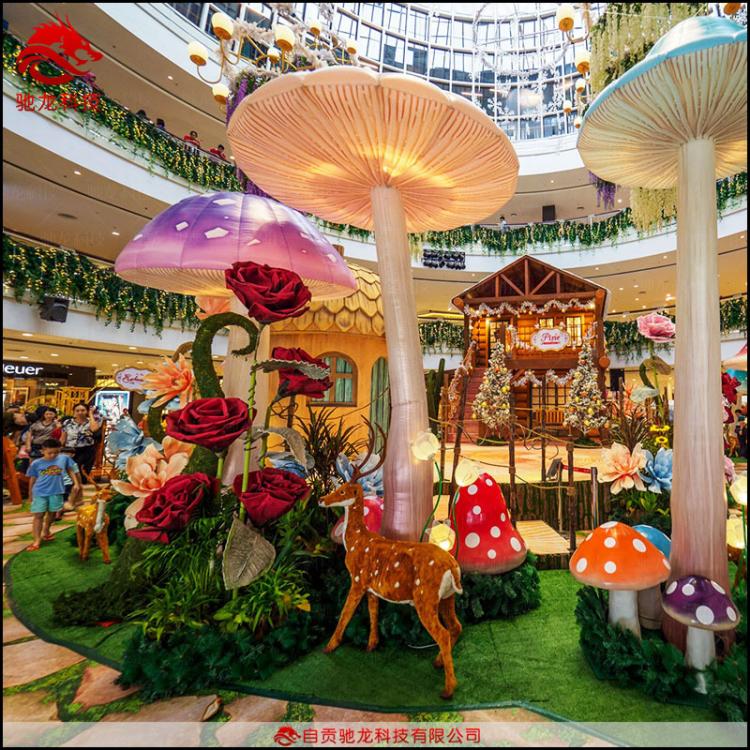 商場(chǎng)異形發(fā)光美陳定制特殊造型dp擺件蘑菇造型燈具裝置公司