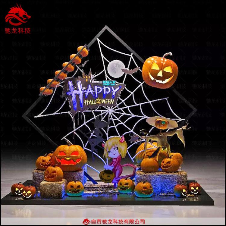 萬(wàn)圣節(jié)南瓜美陳雕塑商場(chǎng)立體異形布藝花燈美陳裝置制作公司