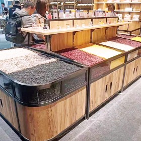 超市木制散裝貨架中島干貨展示架五谷雜糧柜干貨貨架價格支持定做