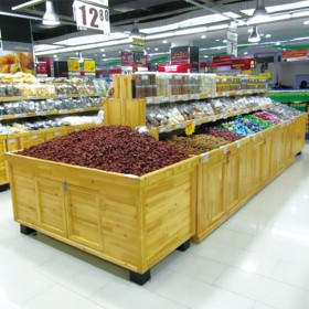 四川超市散貨堆頭木制散裝貨架 商超中島展示貨架 干貨貨柜定制批發(fā)