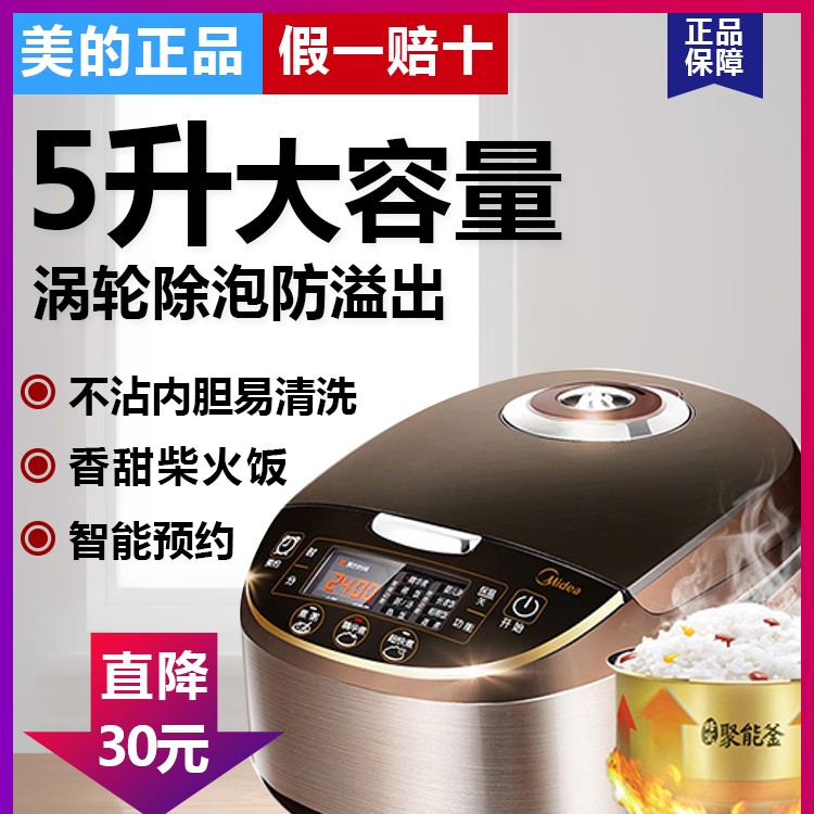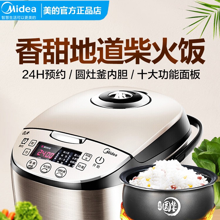 美的MB-RE429電飯煲 4L家用智能預(yù)約柴火飯4升電飯鍋