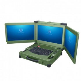 15.6寸軍綠色折疊三屏加固便攜式指揮臺(tái)支持定制按鍵搖桿三屏便攜機(jī)